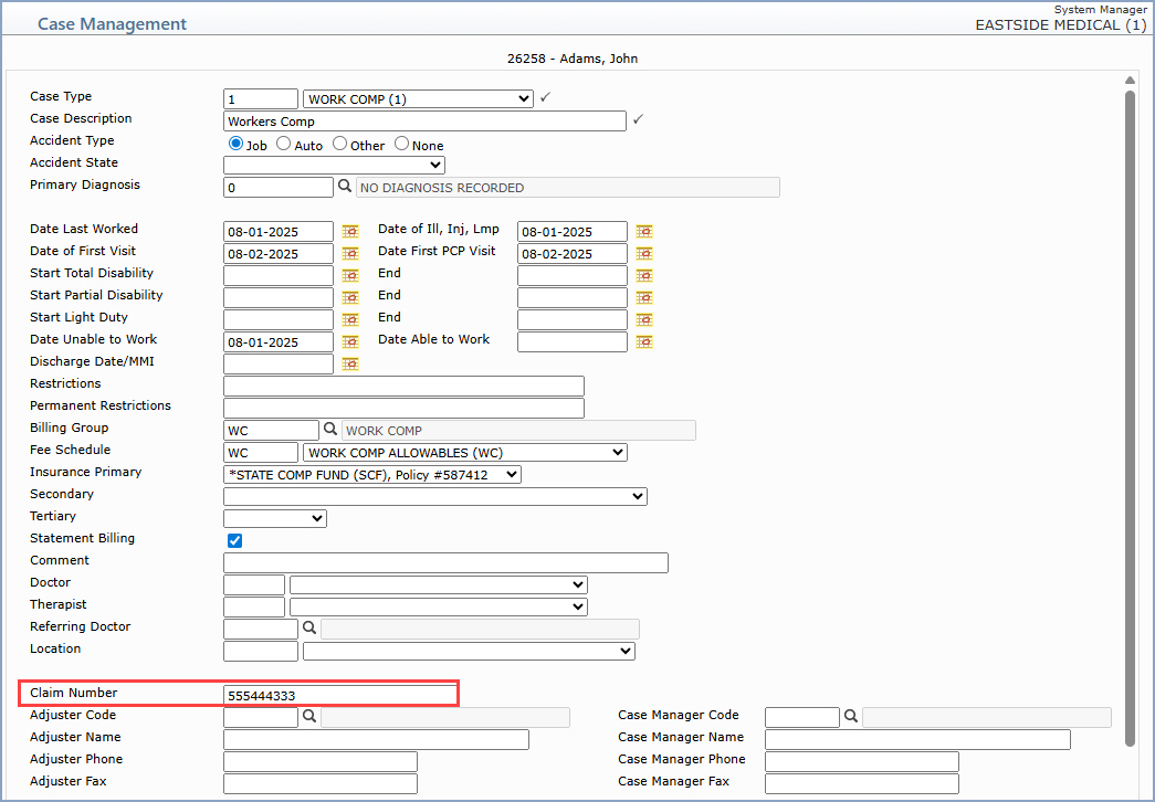 Code from the eMEDIX Payer List). This data populates in the electronic