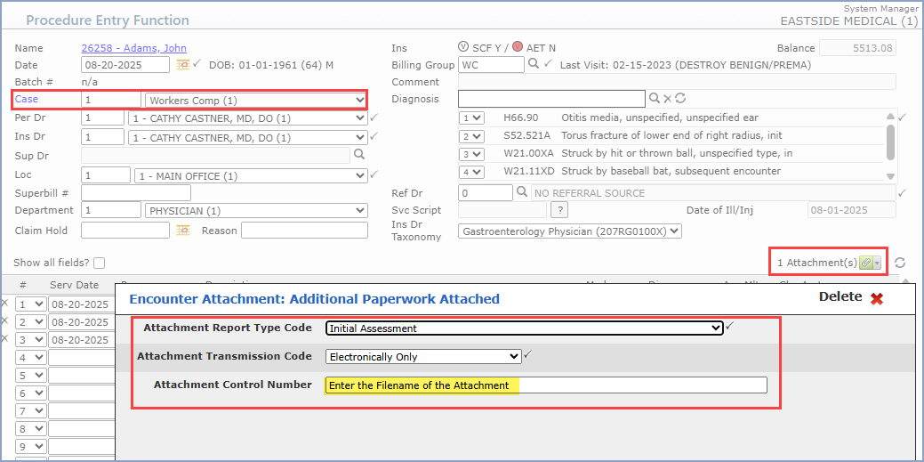 the electronic claim Loop 2300 PWK segment. When completing the fields